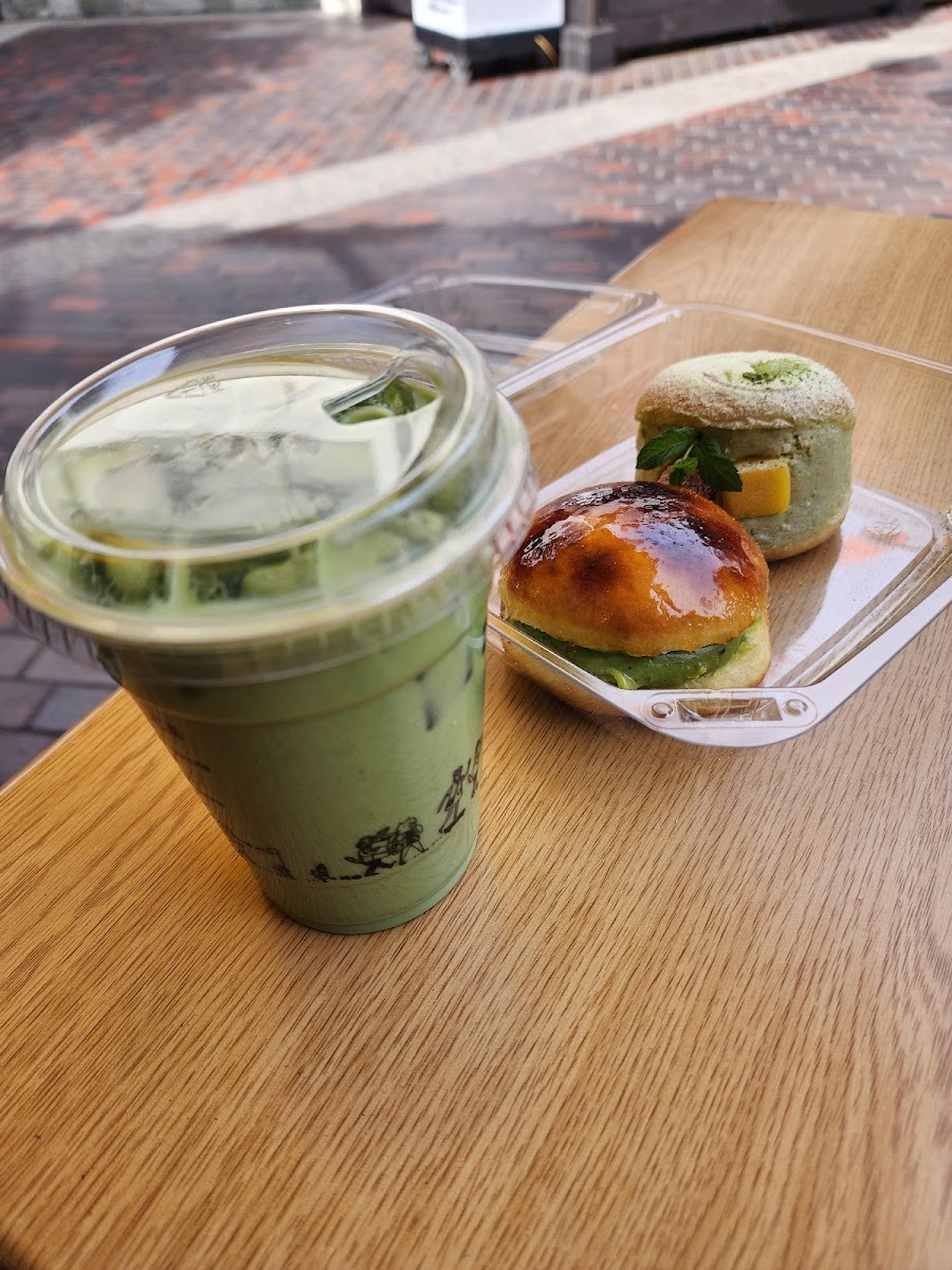 Hong Kong TEA LATTES with Matcha Milk Bun Such a perfect combination!!! Highly recommend this store when you visit Little Tokyo in LA.